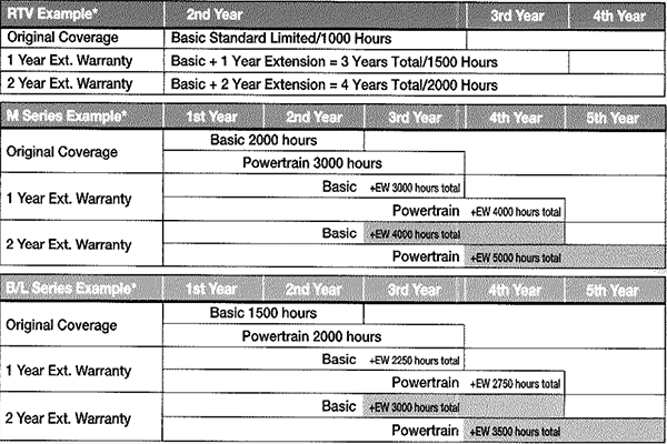 The Kubota Orange Protection Program can be financed through Kubota Credit Corporation USA, if the extended warranty is purchased at the same time as the tractor. Consult your dealer for details.